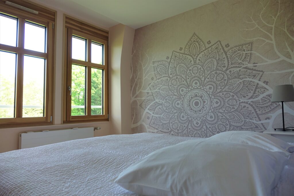 Les chambres sont très confortables (vous pourrez choisir entre plusieurs styles). Notre salle de Yoga est spacieuse et magnifique avec ses matériaux nobles.